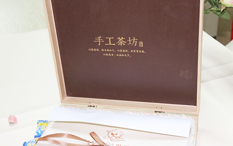 1.材質:茶葉包裝盒定制盒子中心用特種紙熱壓紋路,無印刷,直接燙金産品名字激凸,标志燙紅金,地址信息燙黃金,盒子正中心貼一個産品代表圖案,盒子外框制作5MM厚度的木質材料.盒子内部結構上盒貼特種紙燙金文字,下盒内托0.5MM厚度上面鋪上進口高檔寶白色絨布,絨布上面放一張白色特種紙文字燙金,蓋一層紙能讓産品更有一種神秘感 。盒型爲翻蓋盒,盒子的翻蓋地方上一個自動的小鎖扣,顯得更加漂亮精緻整款盒子手工制作精細,紙張和木質結合更加環保。