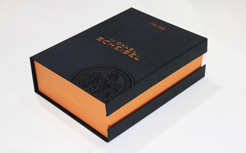 1.材質:高檔禮品盒定制面紙180G黑色紋路特種紙,不用印刷,盒面皮殼文字燙黃色金擊凸,LOGO圖片絲印局部UV,裱1800G滑面雙灰闆,内盒面紙用180G米黃色萊利紋特種紙,裱1800G滑面雙灰闆。盒型爲翻蓋盒整款盒子都是手工制作