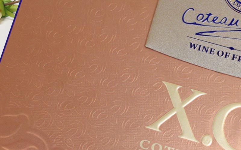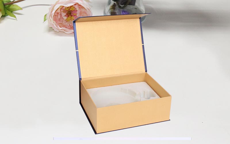 1.材質:盒子外面採用紅色紋路塗布特種紙,彩色印刷文字LOGO燙金熱壓圖案紋路,裱2000G雙灰闆和内放有彈性的EVA,盒型爲翻蓋盒整款盒子都是手工制作